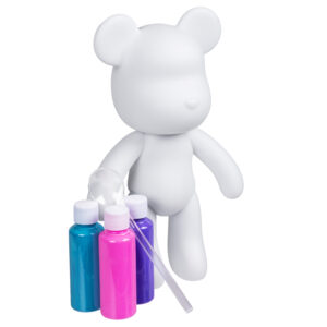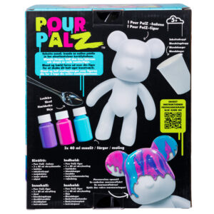 Slip fantasien løs med Pour PalZ Paint Bear! Dette kreative sæt lader én forvandle en helt hvid bjørn til et funklende mesterværk med flotte farver i pink, blå og guld. Det er bare at blande og hælde malingen over bjørnen for at skabe flotte marmoreffekter.