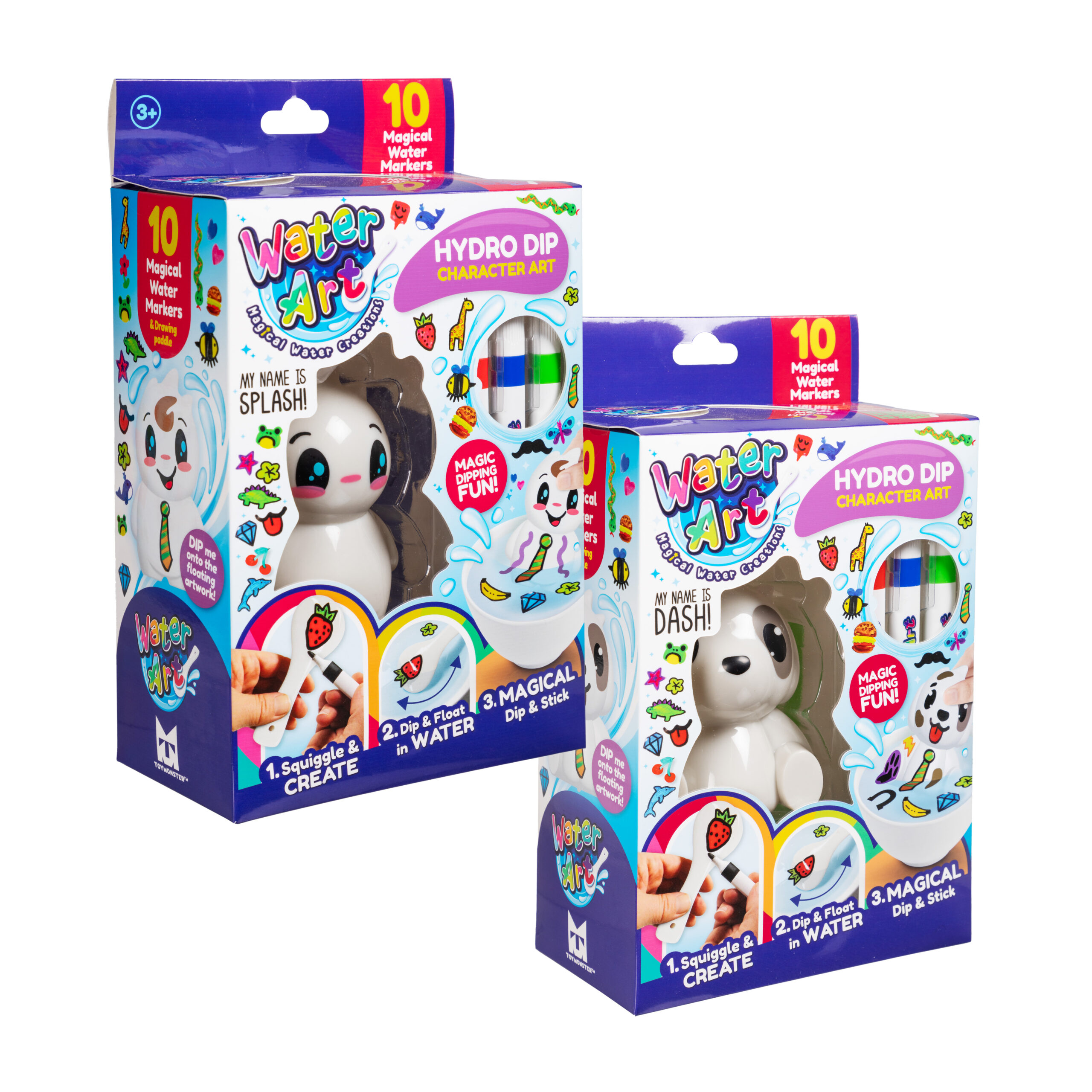Water Art Figursæt med 10 tuscher er et kreativt sæt, der giver børn og voksne mulighed for at lave flotte, flydende kunstværker ved hjælp af vandbaserede farver. Sættet indeholder 10 tusser i forskellige farver samt en figur, hvorpå de små kunstværker kan påføres. Man kan ligeledes overføre de unikke mønstre til papir, glas, keramik og andre glatte overflader. Perfekt til sjov og fantasifuld leg med farver og design.